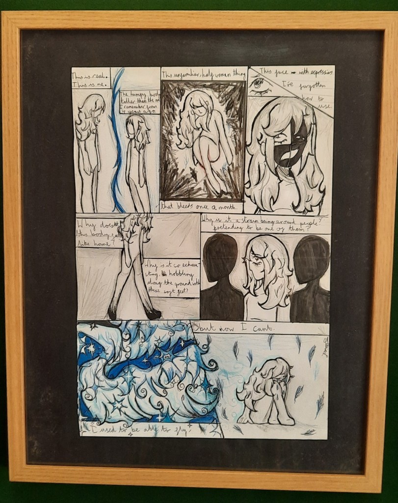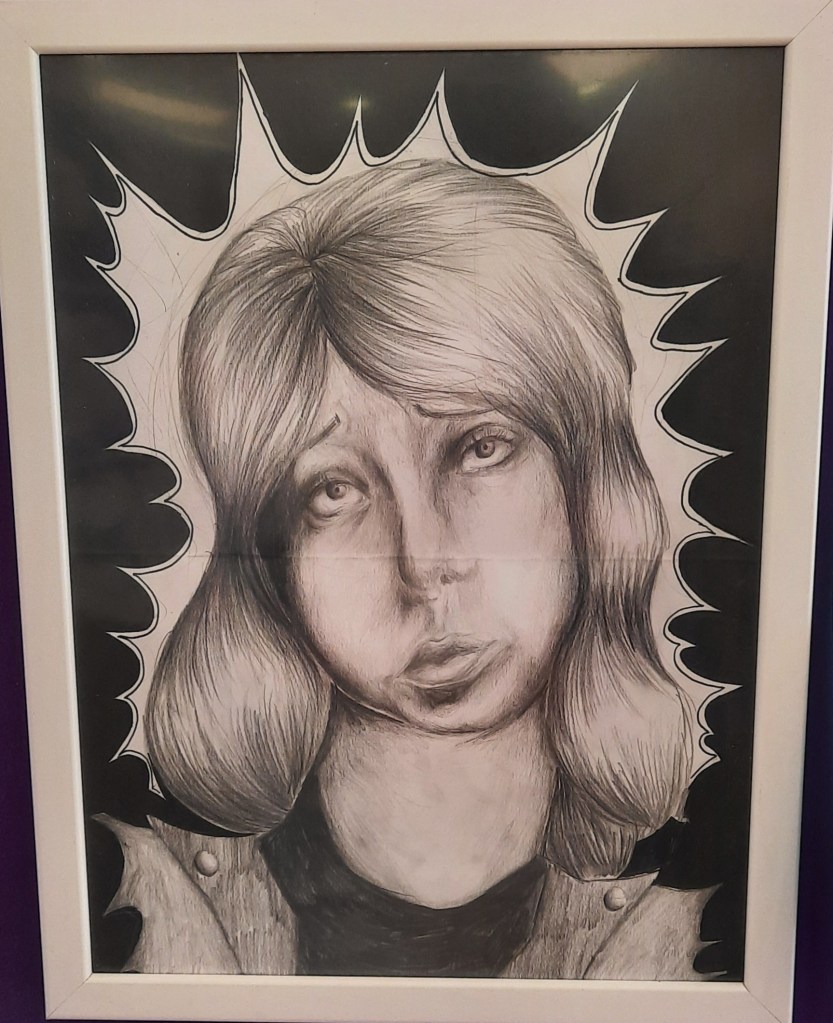The runner-up for the Creative Prize was Jillian from All Saints Catholic School, who created a very moving graphic interpretation of the character of Nettle from Unraveller. Jillian was awarded the runner-up certificate and a £10 book token.